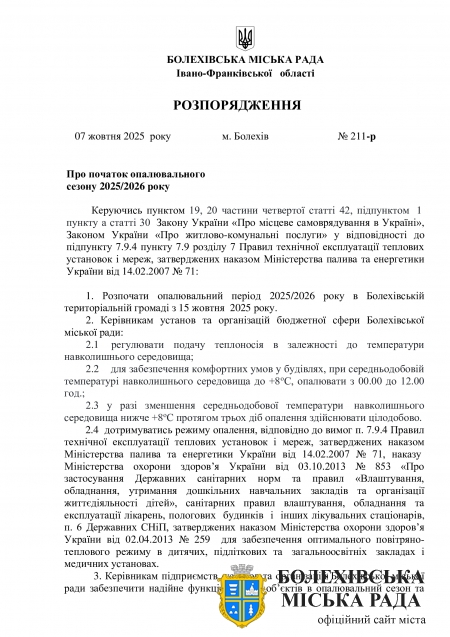 Сьогодні, 15 жовтня 2025 року, у Болехівській територіальній громаді розпочався опалювальний сезон 2025/2026 років.
