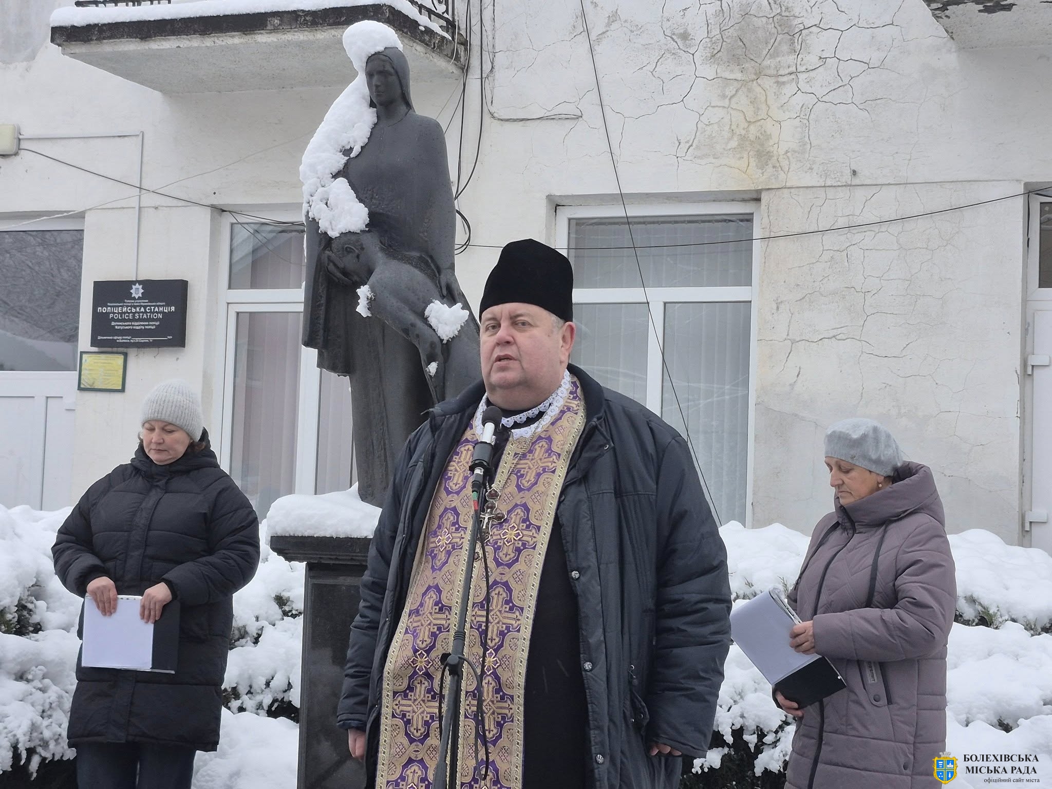 Отець-декан Болехівського деканату УГКЦ Василь Дзяйло у своїй молитві згадав усіх невинно заморених голодом, усіх, кого тоталітарний режим позбавив життя, і всіх, хто нині поклав душу в боротьбі за незалежність України.
