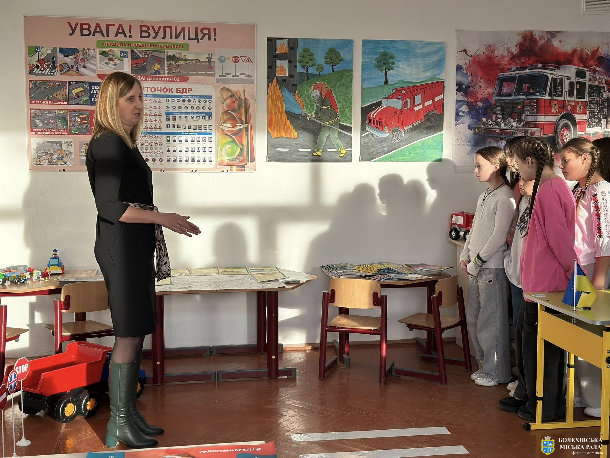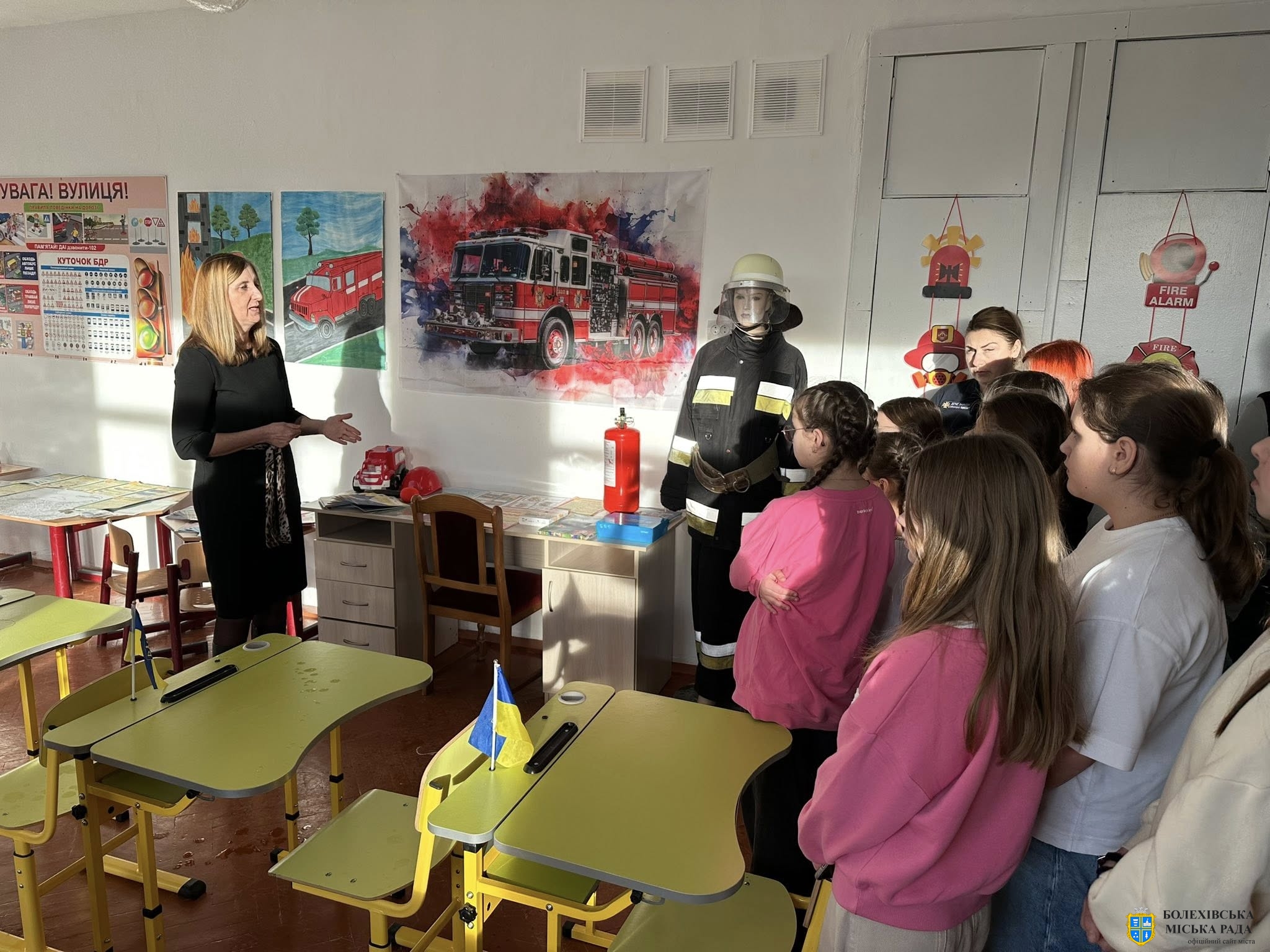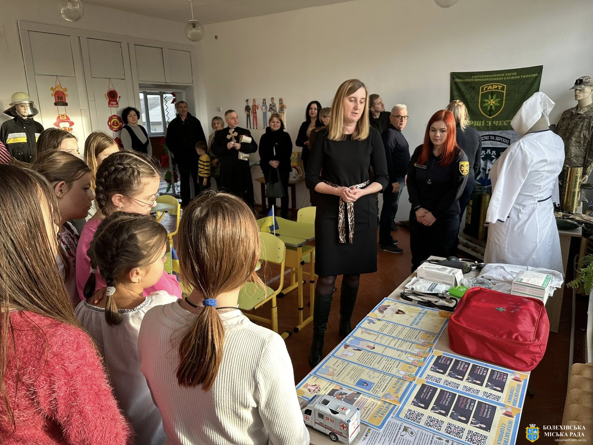 Головний спеціаліст управління освіти виконавчого комітету Болехівської міської ради Мар’яна Стефанів від імені начальника управління освіти привітала присутніх із відкриттям класу безпеки та наголосила, що реалізація цього проєкту стала можливою завдяки підтримці Болехівської міської ради та благодійного фонду «Волонтери Болехівщини».