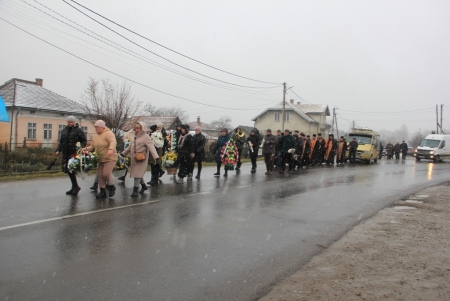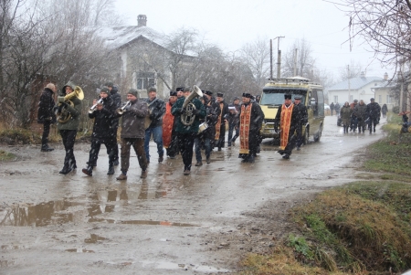 Останньою земною дорогою Віктора провели під звуки військового оркестру. Скорботна колона рушила до храму, де священники ПЦУ та УГКЦ звершили чин відспівування.