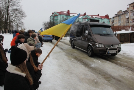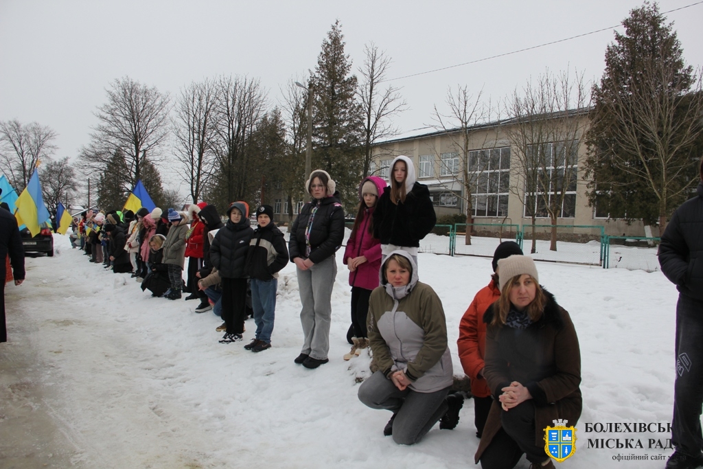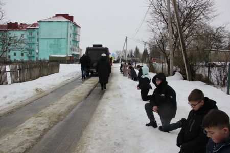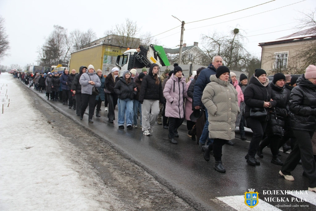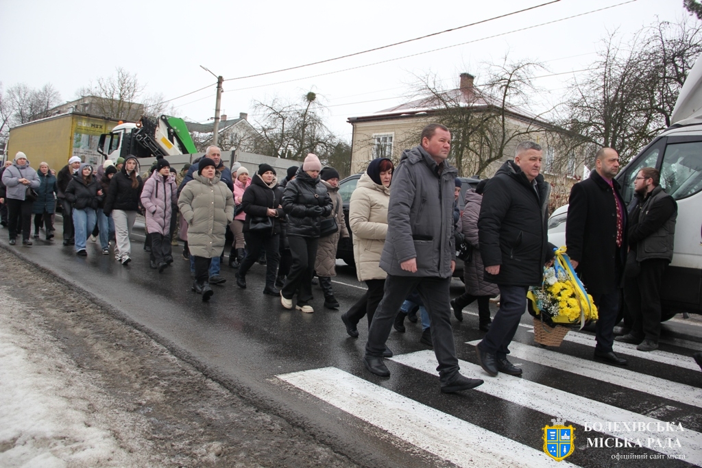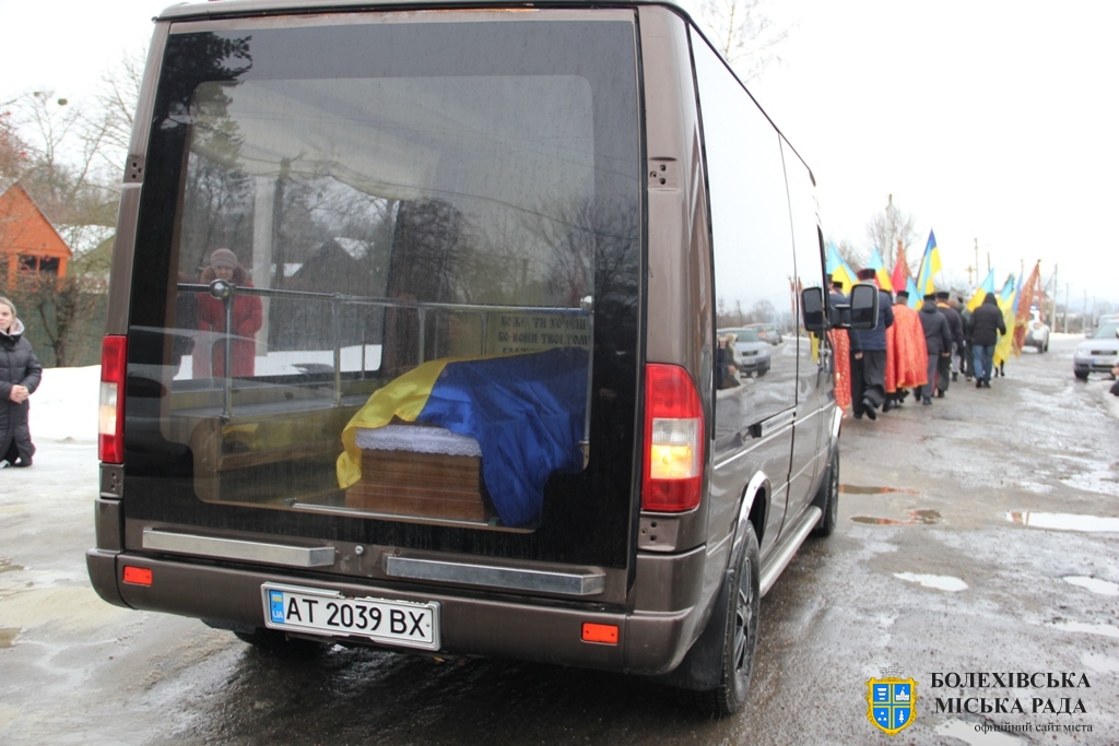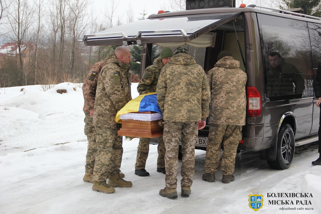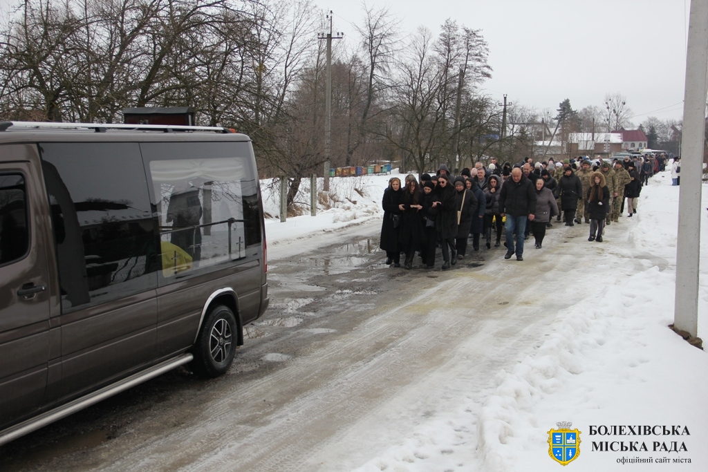 Близько обідньої пори траурний кортеж прибув до Болехова. Із сльозами на очах та відчуттям невимовної втрати, стоячи на колінах, жителі громади зустріли полеглого Героя біля храму святих верховних апостолів Петра і Павла.