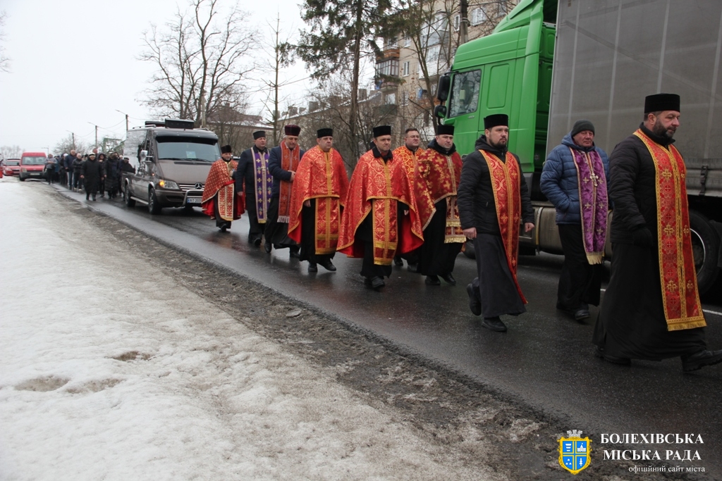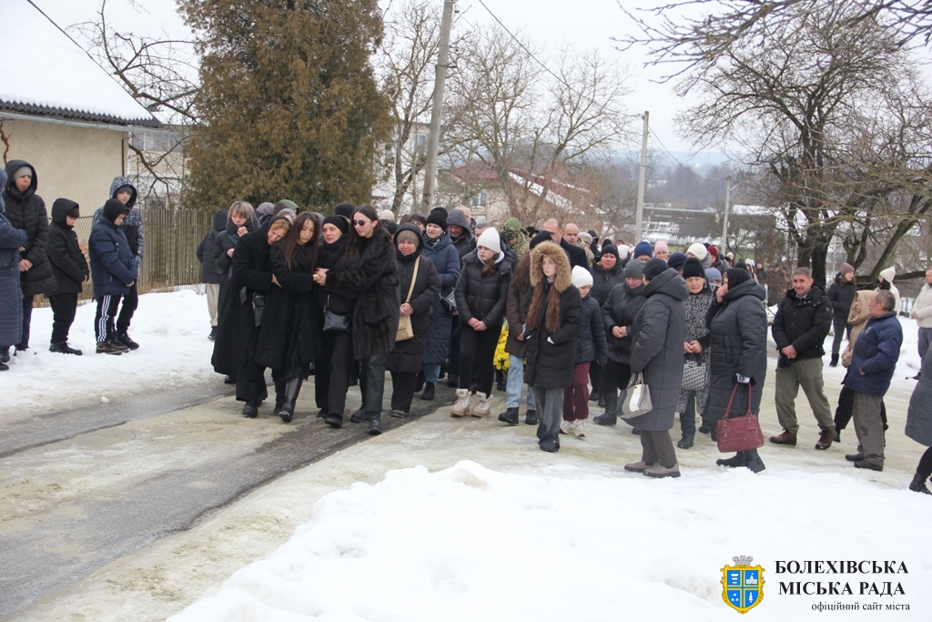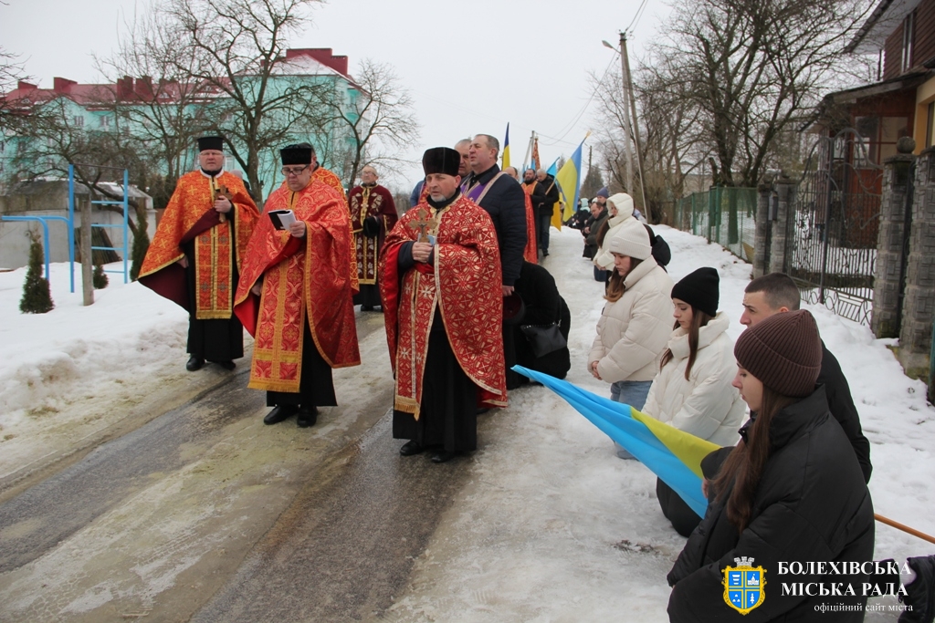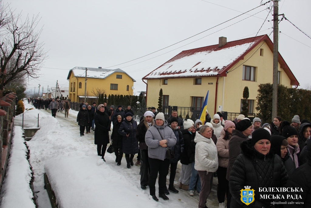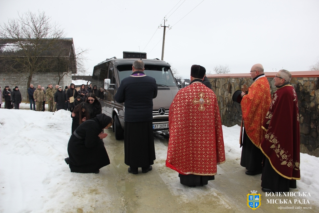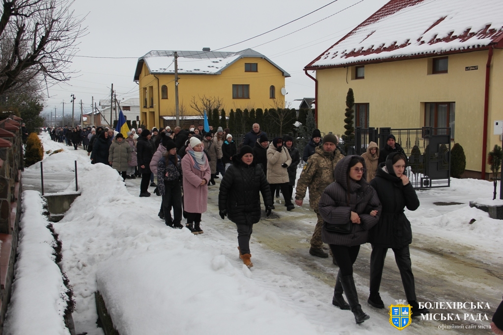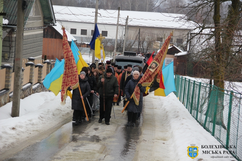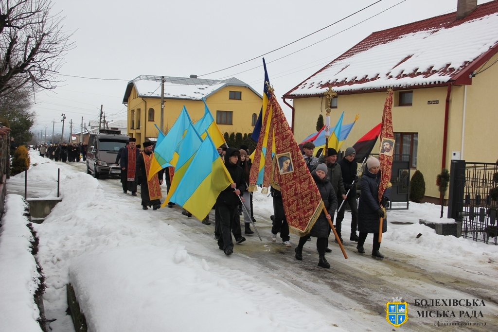 Тут декан Болехівського деканату УГКЦ о. Василь Дзяйло, настоятель храму о. Дмитро Павлик, духовенство УГКЦ та ПЦУ разом із вірянами вознесли спільну молитву. Віддати останню шану воїну прийшли побратими, колеги, друзі, рідні, сусіди, представники влади та сотні мешканців громади. Звідси скорботною процесією, під церковними хоругвами та синьо-жовтими прапорами, тіло полеглого Захисника провели до його рідної оселі.