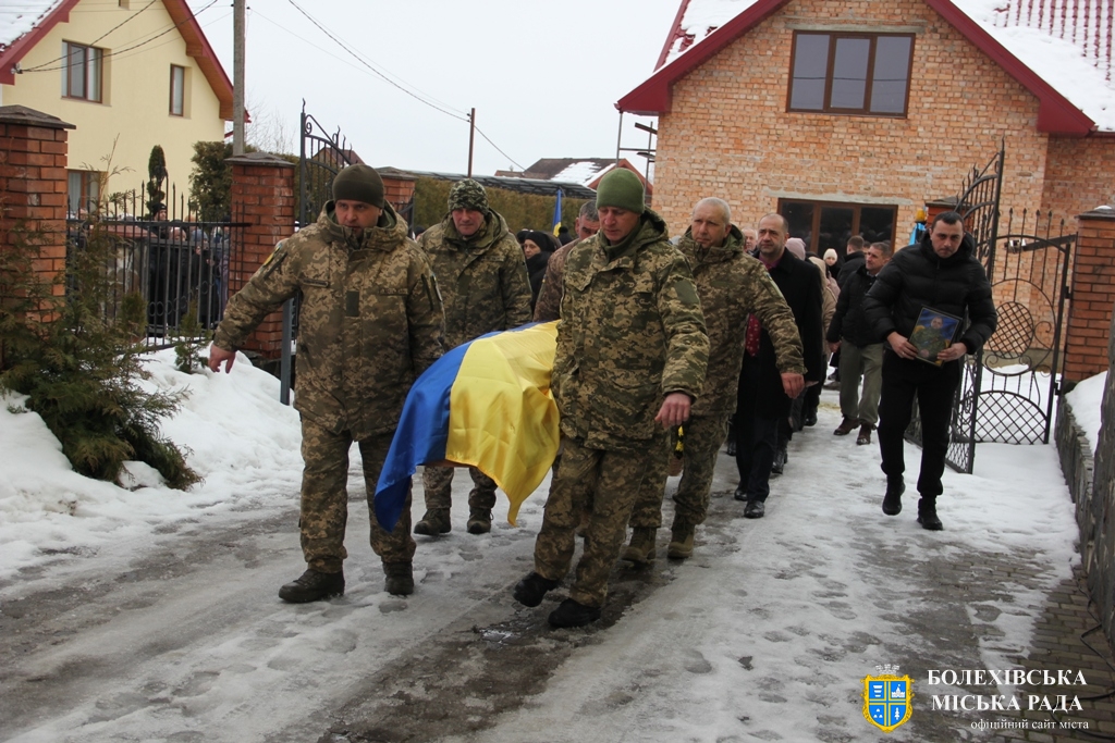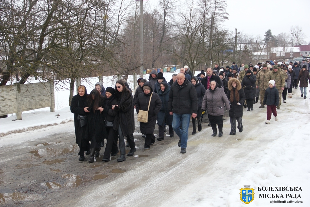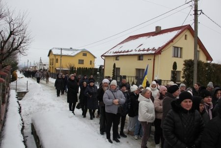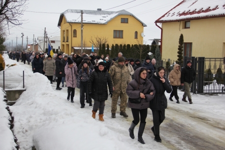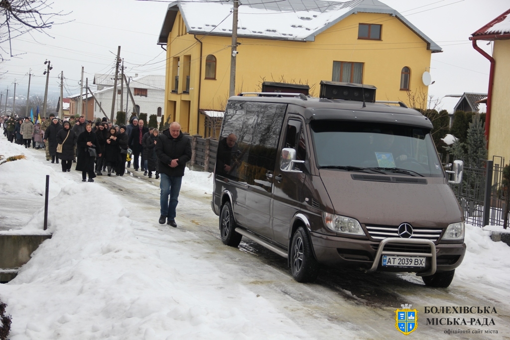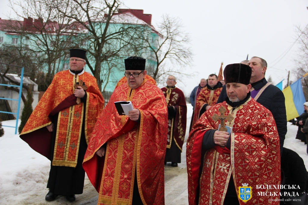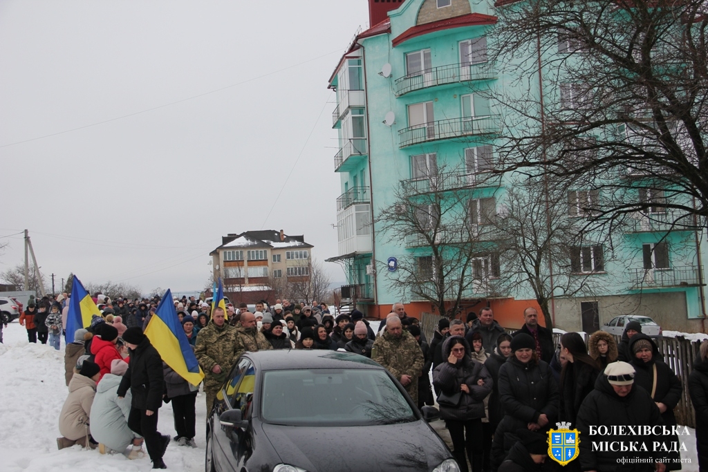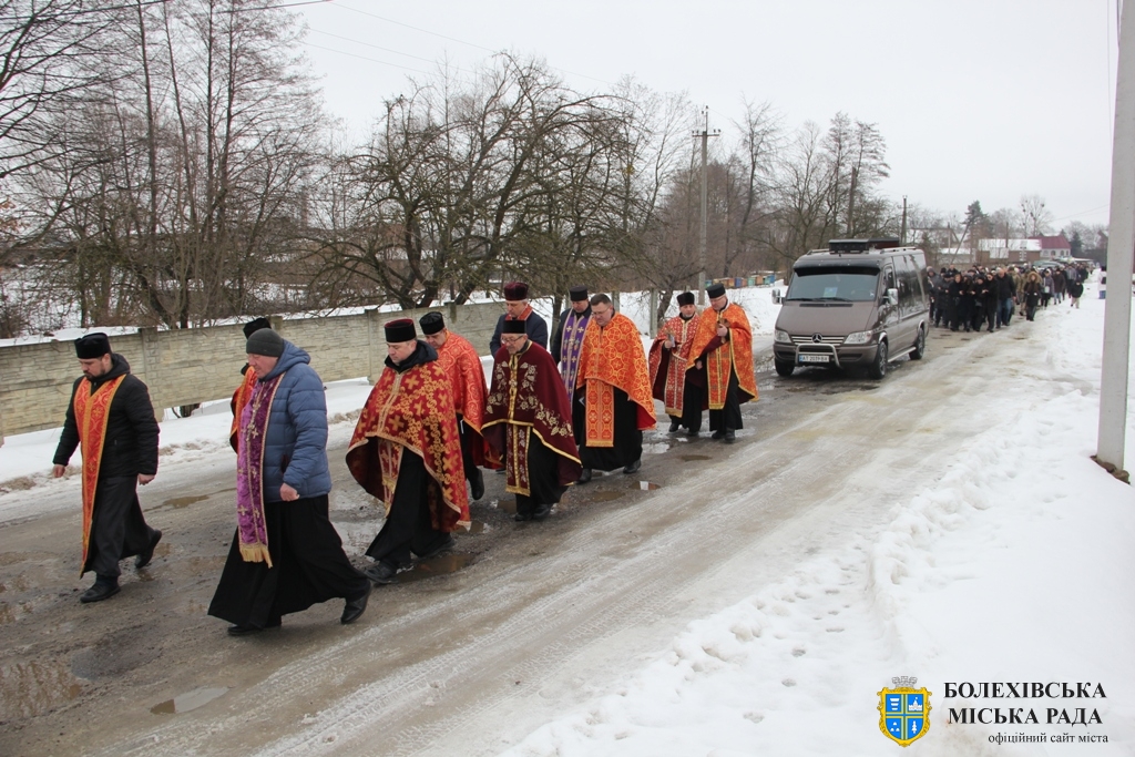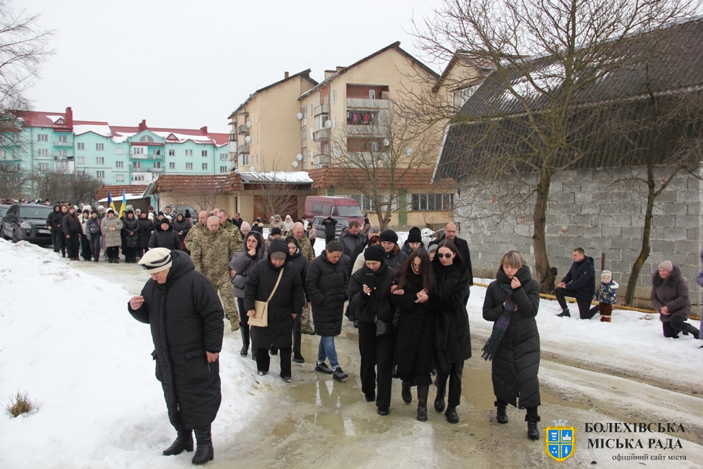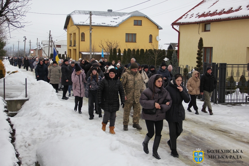 Тут декан Болехівського деканату УГКЦ о. Василь Дзяйло, настоятель храму о. Дмитро Павлик, духовенство УГКЦ та ПЦУ разом із вірянами вознесли спільну молитву. Віддати останню шану воїну прийшли побратими, колеги, друзі, рідні, сусіди, представники влади та сотні мешканців громади. Звідси скорботною процесією, під церковними хоругвами та синьо-жовтими прапорами, тіло полеглого Захисника провели до його рідної оселі.