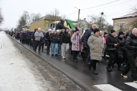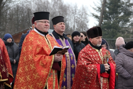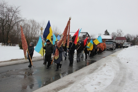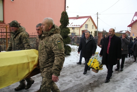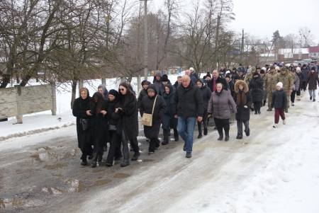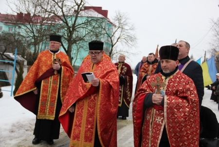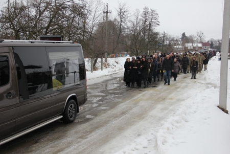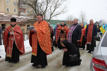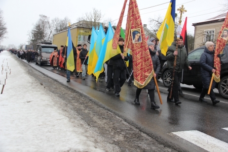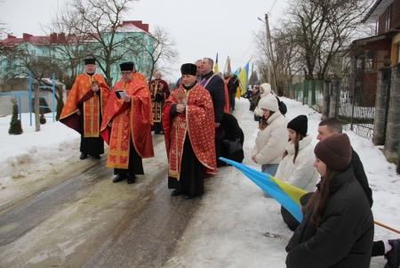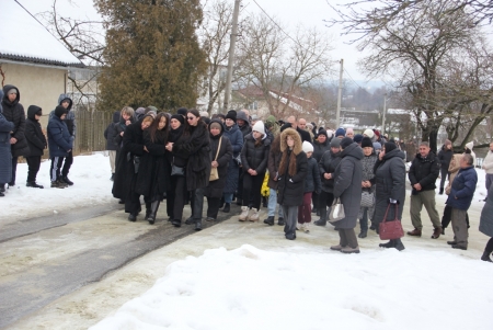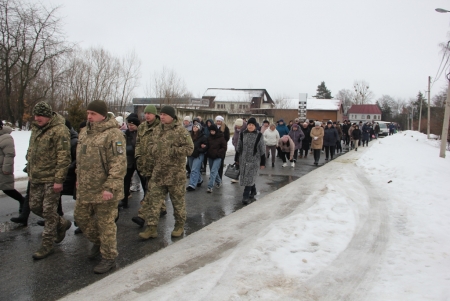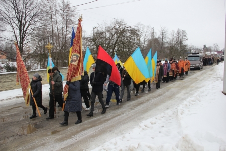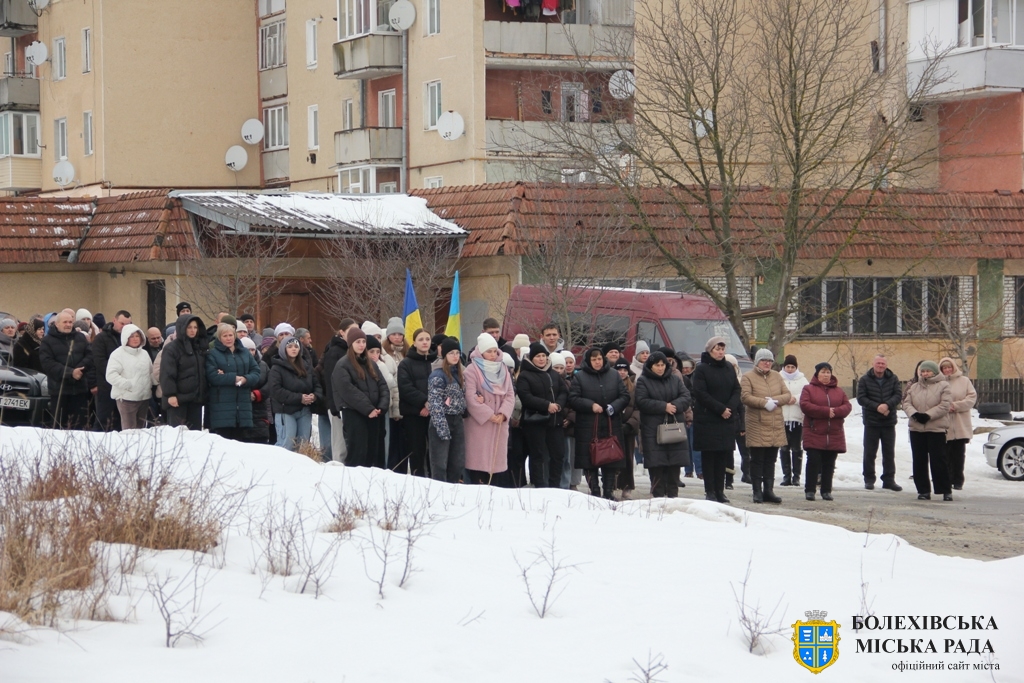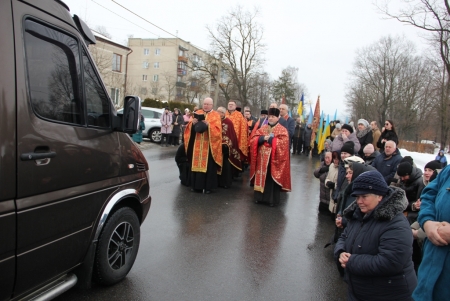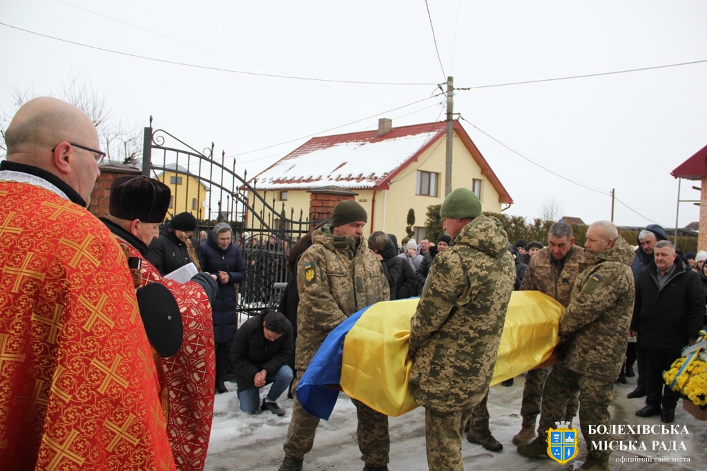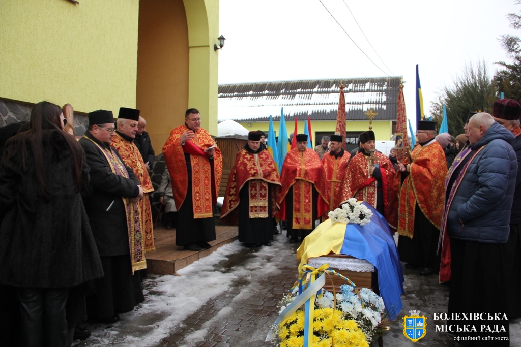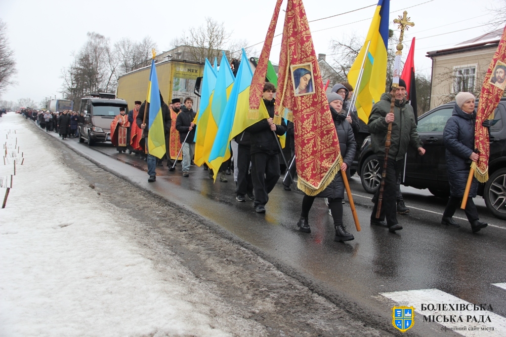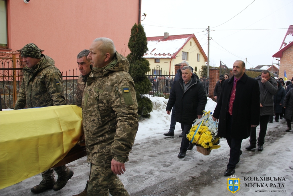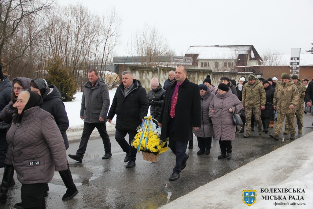 Тут декан Болехівського деканату УГКЦ о. Василь Дзяйло, настоятель храму о. Дмитро Павлик, духовенство УГКЦ та ПЦУ разом із вірянами вознесли спільну молитву. Віддати останню шану воїну прийшли побратими, колеги, друзі, рідні, сусіди, представники влади та сотні мешканців громади. Звідси скорботною процесією, під церковними хоругвами та синьо-жовтими прапорами, тіло полеглого Захисника провели до його рідної оселі.