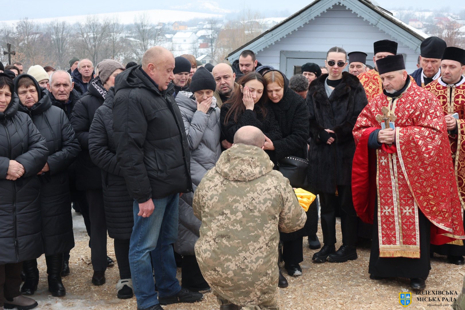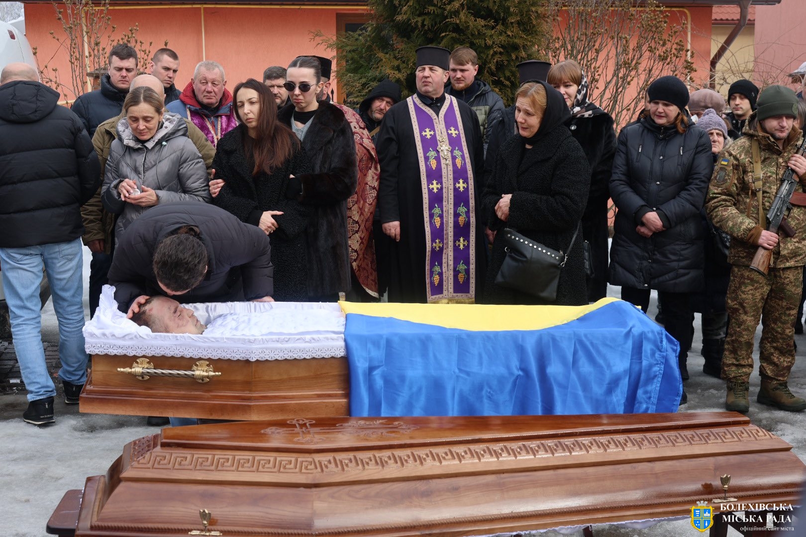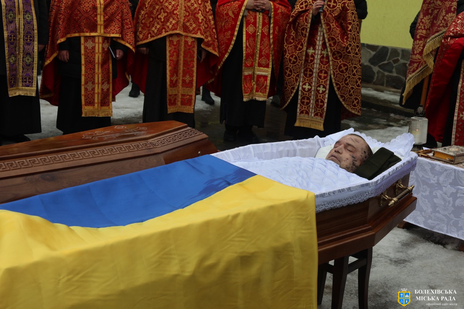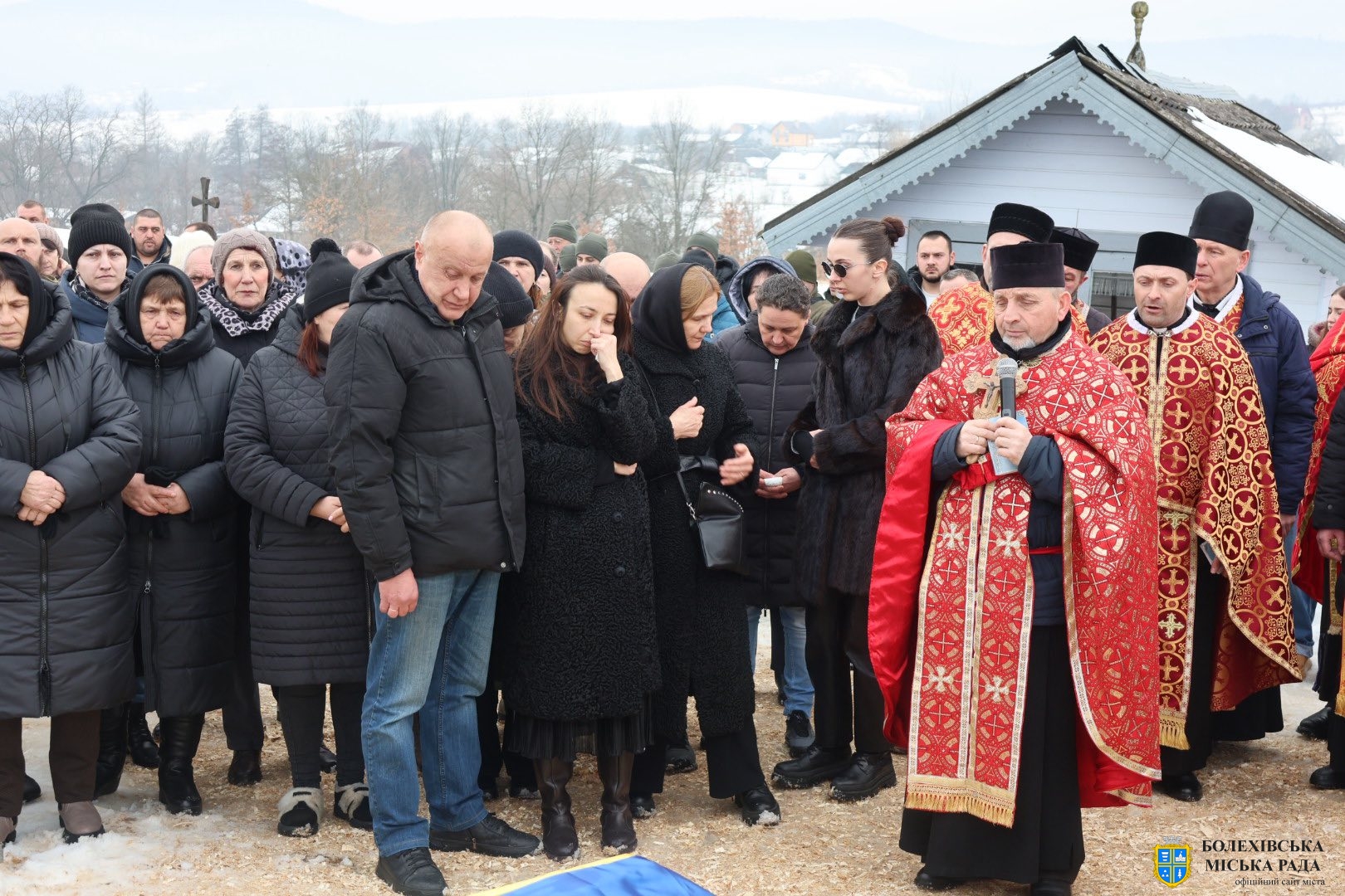 До присутніх звернувся отець-декан Болехівського деканату УГКЦ Василь Дзяйло, наголосивши: «Знову настав страшний лютий, і ми прощаємося з людиною, яка віддала життя за нас. Після лютих морозів завжди приходить відлига, і так само одного дня обов’язково прийде Перемога. Війна закінчиться, але для родин загиблих вона триватиме в серці завжди — там назавжди залишиться рана втрати, яка не загоїться. Він також зазначив, що в історії не існувало жодної імперії, яка б не впала, так само впаде й ця імперія зла, а український народ зможе вільно зітхнути, зажити мирним і щасливим життям на своїй землі».