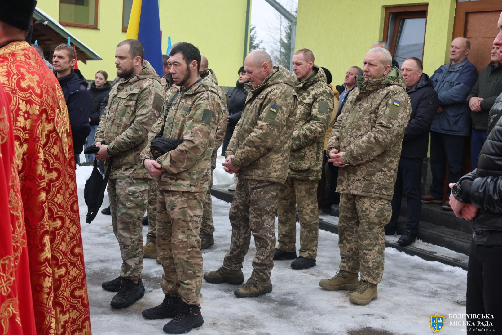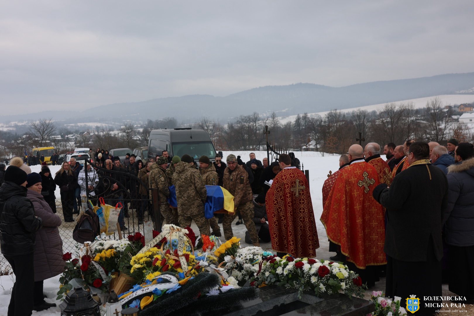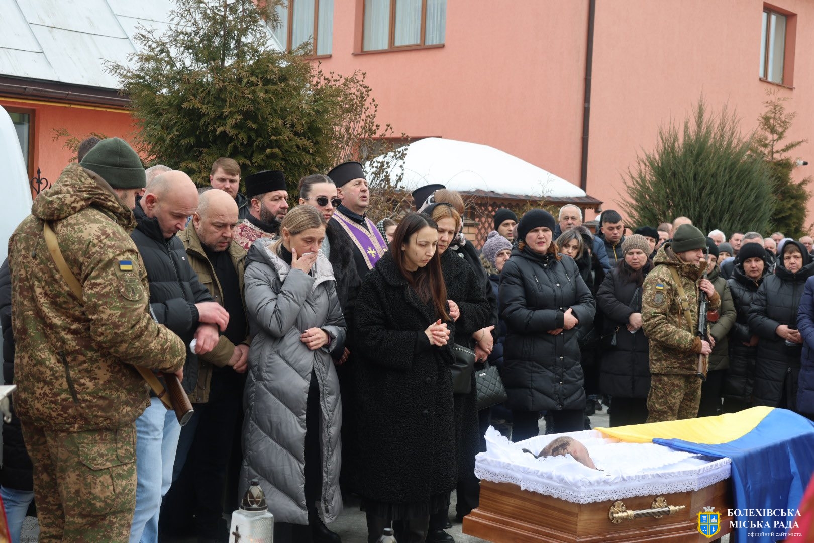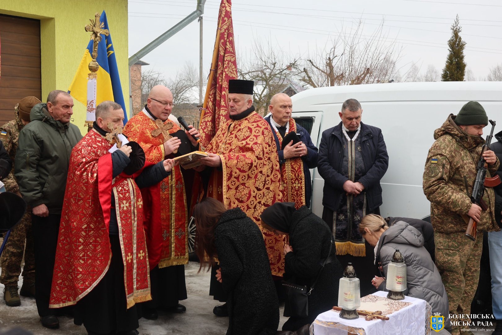 До присутніх звернувся отець-декан Болехівського деканату УГКЦ Василь Дзяйло, наголосивши: «Знову настав страшний лютий, і ми прощаємося з людиною, яка віддала життя за нас. Після лютих морозів завжди приходить відлига, і так само одного дня обов’язково прийде Перемога. Війна закінчиться, але для родин загиблих вона триватиме в серці завжди — там назавжди залишиться рана втрати, яка не загоїться. Він також зазначив, що в історії не існувало жодної імперії, яка б не впала, так само впаде й ця імперія зла, а український народ зможе вільно зітхнути, зажити мирним і щасливим життям на своїй землі».