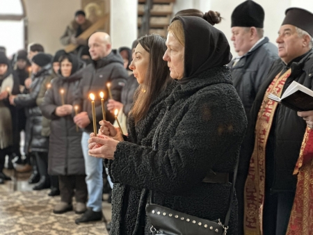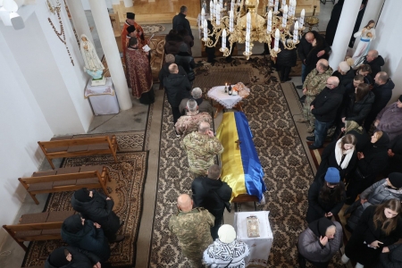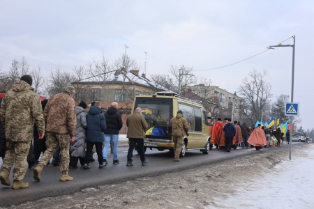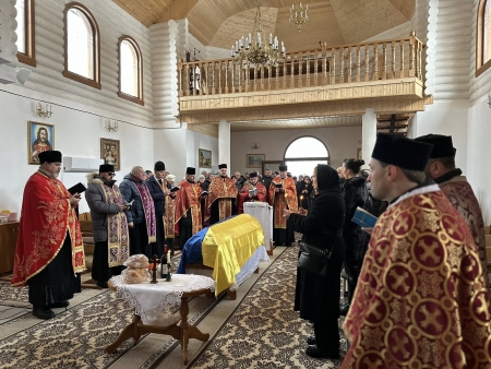 Жалобний кортеж рушив до церкви Святих апостолів Петра і Павла, де священнослужителі відслужили панахиду за загиблим воїном. У молитвах звучали слова вдячності, скорботи й надії, щоб Господь прийняв його душу до Свого Царства.