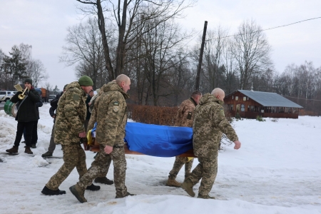 Біля рідного дому з Героєм прощалися найдорожчі йому люди… Повітря було наповнене болем і тишею, яку неможливо витримати. У кожному погляді — невимовний смуток, у кожному серці — рана, яка не загоїться ніколи.