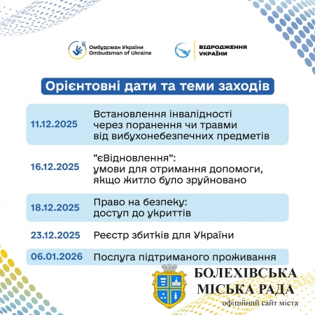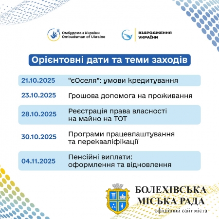 Запрошуємо ВПО на онлайн заходи, де представники різних міністерств і Офісу Омбудсмана нададуть відповіді на всі питання які у вас виникають, починаючи від виплати допомоги на проживання, вступу дітей до закладів освіти, постановки на квартирний...
