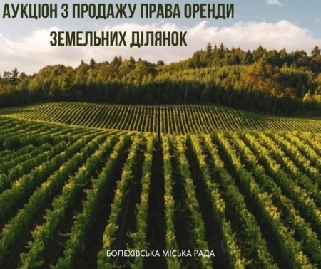 Болехівська міська рада повідомляє, що відбудеться аукціон щодо продажу права оренди земельних ділянок. У аукціоні можуть взяти участь всі охочі (громадяни України, фізичні особи — підприємці, юридичні особи України та іноземні юридичні особи,...