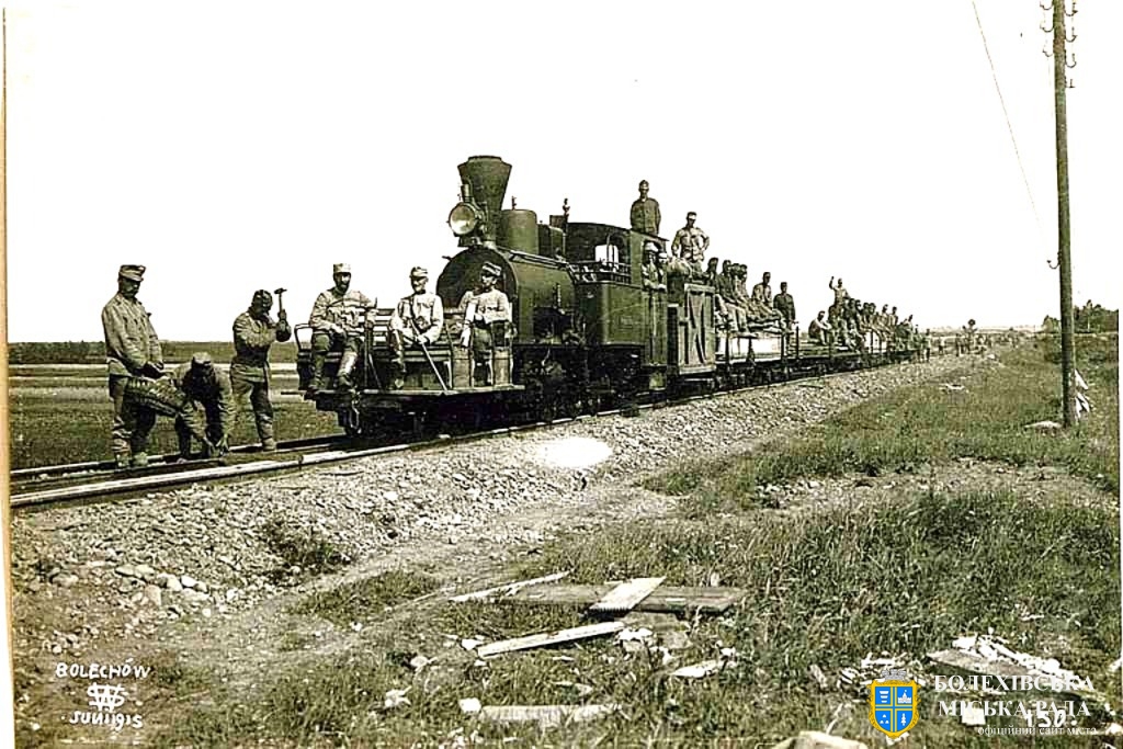 25 | Перший поїзд через відновлений міст. Болехів, червень 1915 р. Джерело: Österreichischen Nationalbibliothek, Bildarchiv Austria |