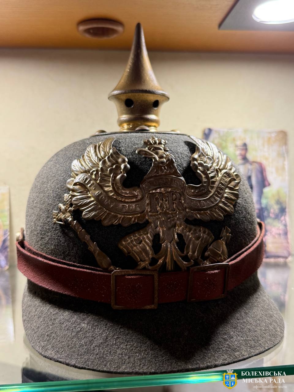 34 | Реконструкція шолома німецького типу «Пікельхельма» з оригінальними металевими частинами. Джерело: Краєзнавчий музей «Патріот», с. Тисів Болехівської міської територіальної громади Калуського р-ну Івано-Франківської області. Кн–463, Р–65. Знайдено в місцях боїв під Болеховом.). |