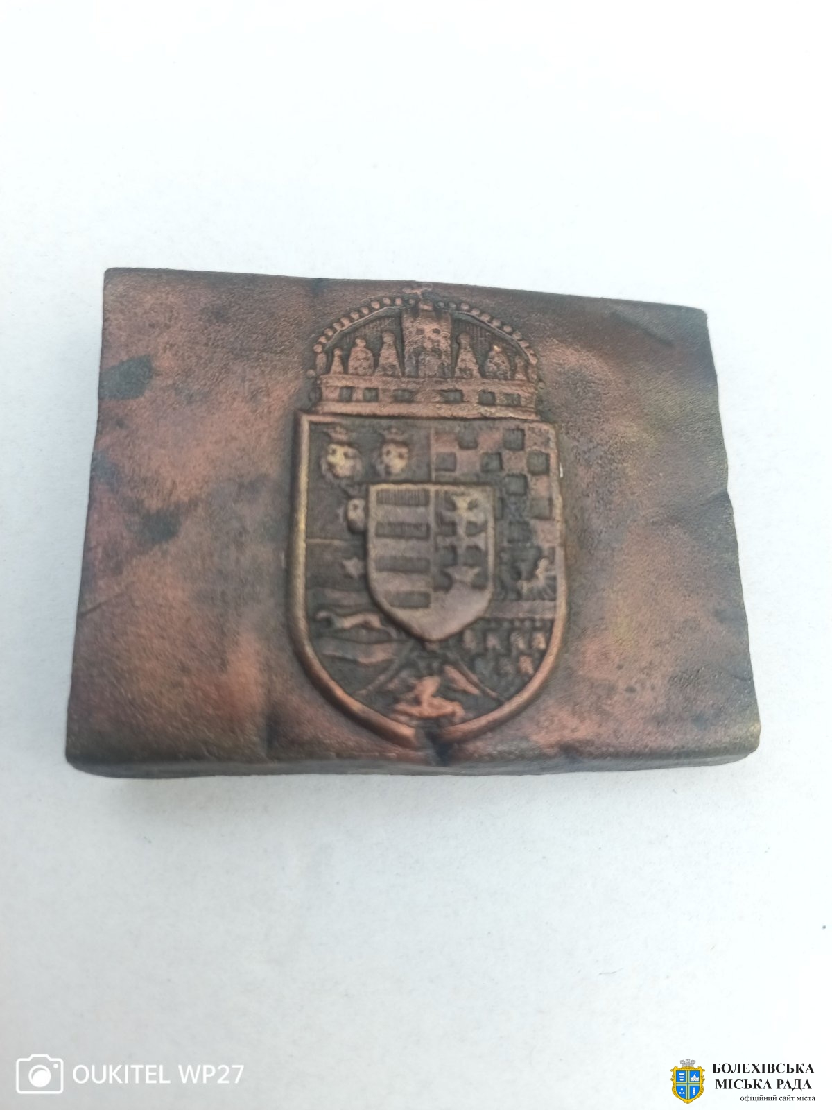 35 | Угорська солдатська пряжка часів Першої світової війни. Джерело: Краєзнавчий музей «Патріот», с. Тисів Болехівської міської територіальної громади Калуського р-ну Івано-Франківської області. Кн–458, А–394. Знайдено на Кугутовому полі (урочище Долішнє поле, м. Болехів). |